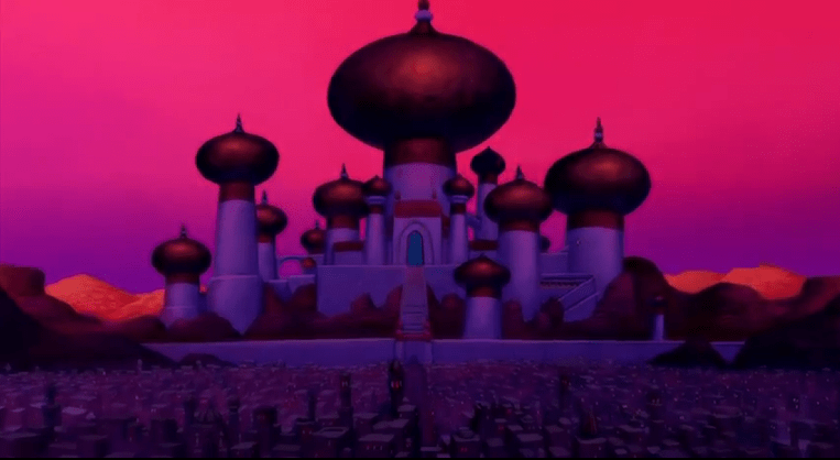 As the names of all the white men who created and produced the film fade on and off the screen in curvy, gold embossed calligraphy, we watch as a trudging camel and its passenger lumber across the sand and reach the fictional city of Agrabah, featuring the Sultan’s Taj Mahal-inspired palace against the backdrop of a vibrant pink and purple sunset and a shot of an almost-nude man performing fire breathing and as he shoots flames across the screen, we are brought back to the camel and its rider, the latter of whom goes on to introduce and narrate the story. In just these first 60 seconds of the film, the Orient is already so clearly established and given imagery and characteristics that will remain motifs and themes throughout the film. By all means, this is what the filmmakers intended and is good filmmaking and storytelling strictly from a cinematic perspective. The issue therein lies the fact that the symbols they’ve established rely exclusively on stereotypes and an overall homogenization of the Orient.