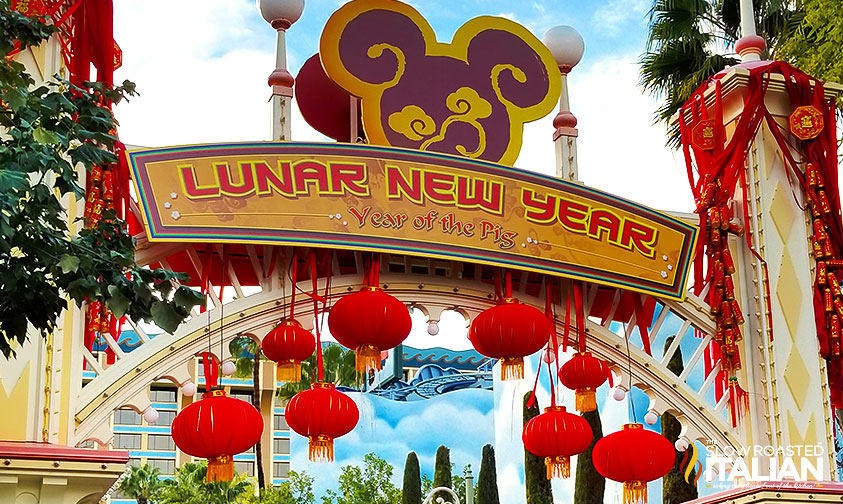 One of the hallmarks of Disney’s monetary and branding success is the translation of their films into physical manifestations, generally through merchandising and product placement as well as the iconic international Disney resorts. For about three weeks in late January and early February, the Disneyland park puts on Mulan’s Lunar New Year Celebration as a gesture meant to honor the Chinese, Korean, and Vietnamese Lunar New Years. For these few weeks during an annual low peak in tourism, a large section of Paradise Pier in the California Adventure park is decked out in “Oriental” garb and decor, beginning with the welcoming Lunar New Year gate, fully dressed in red and gold lanterns, banners, and of course, Mickey heads. This year, the Lunar New Year celebrates the Year of the Mouse, meaning that an extra level of focus is placed on the Mickey and Minnie imagery and silhouettes.